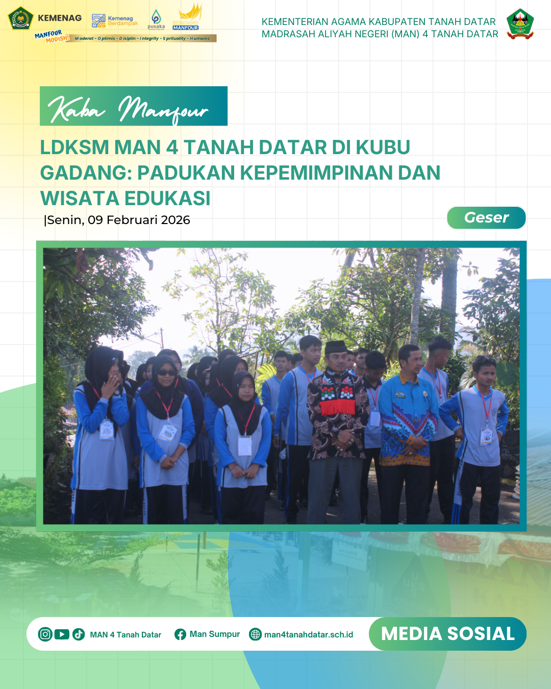 LDKSM MAN 4 Tanah Datar di Kubu Gadang: Padukan Kepemimpinan dan Wisata Edukasi Sumpur– Senin, (09/2/26) Madrasah Aliyah Negeri (MAN)