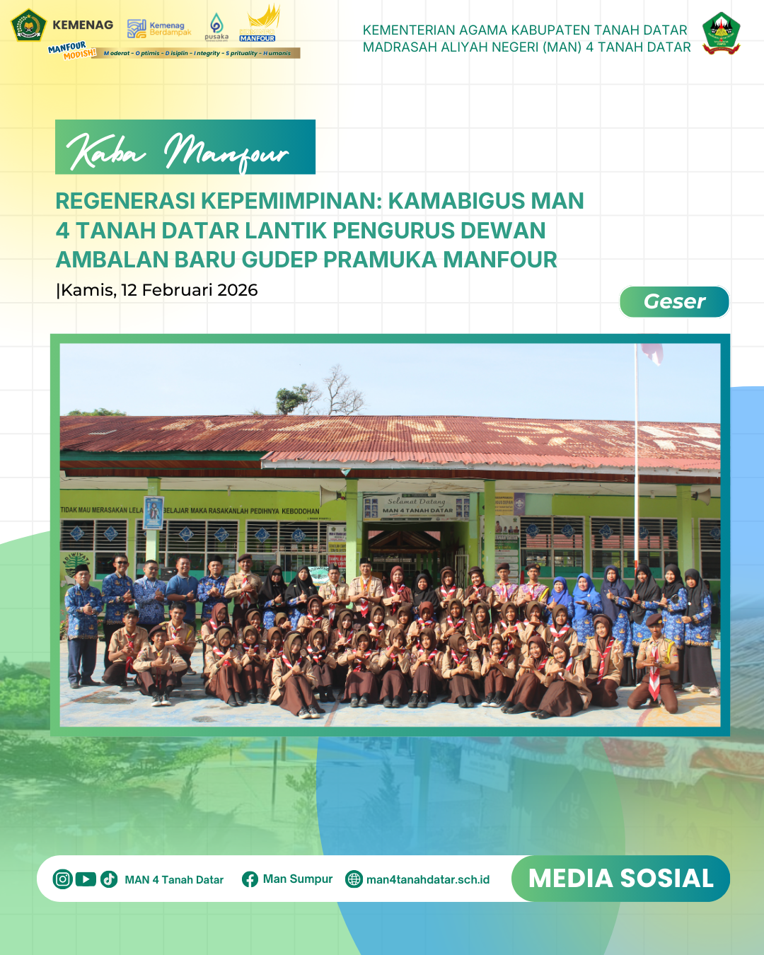 Sumpur- Kamis, (12/2/26) Kepala Madrasah Aliyah Negeri (MAN) 4 Tanah Datar, Bapak Ardoni Ernanda, secara resmi melantik pengurus Dewan Ambalan