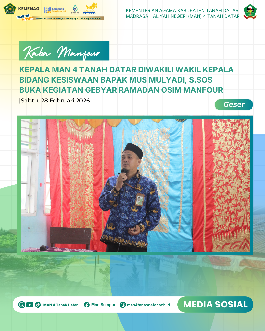 Sumpur- Sabtu, (28/2/26) Kepala MAN 4 Tanah Datar yang diwakili oleh Wakil Kepala Bidang Kesiswaan, Bapak Mus Mulyadi, S.Sos, secara